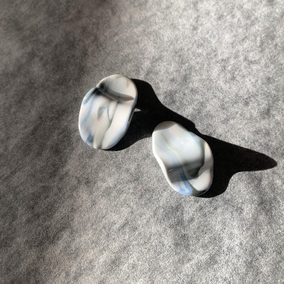 地層のようなマーブルと曲線のピアスです。